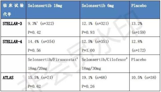 SelonsertibÊÇÓÉGilead¹«Ë¾Íƽø×î¿ìµÄϸ°ûµòÍöÐźŵ÷Àí¼¤Ã¸1£¨ASK1£©ÒÖÖÆ¼Á¡£ÔÚ2019Äê2Ô·Ý £¬Gilead¹«Ë¾Åû¶ÁËselonsertibÔÚNASH´ú³¥ÐÔ¸ÎÓ²»¯»¼Õߣ¨F4£©ÖеÄÈýÆÚÁÙ´²Êý¾Ý£¨STELLAR-4£©¡£ÔÚ877ÃûÕÐļµÄ»¼ÕßÖÐ £¬Ëæ»ú·Ö×é»®·Ö½ÓÊÜ18mgµÄselonsertib£¨n=354£©,6mgµÄselonsertib£¨n=351£©»òο½å¼Á£¨n=172£© £¬ÌìÌì¿Ú·þÒ»´Î¡£Ö÷ÒªÖÕµãÊÇNASH CRN·ÖÀà48ÖÜʱûÓÐNASH¶ñ»¯ÖÐÖÁÉÙ¸ÄÉÆ1¼¶ÏËά»¯£¨ÏËά»¯¸ÄÉÆ¡Ý1£©»¼Õß±ÈÀý¡£Ð§¹ûÏÔʾ £¬selonsertib 18mgÖÎÁÆÖÐÓÐ14.4%£¨p=0.56 vs. placebo£© £¬Ê¹ÓÃselonsertib 6mgÖÎÁÆÖÐÓÐ12.5%£¨p=1.00£©µÖ´ïÏËά»¯¸ÄÉÆ¡Ý1¼¶ £¬²¢ÇÒNASHûÓжñ»¯£»¶ø½ÓÊÜο½å¼ÁµÄ»¼ÕßµÖ´ïÏËά»¯¸ÄÉÆ¡Ý1¼¶µÄÒ²µÖ´ï12.8%¡£¸ÃЧ¹ûÅú×¢¸øÒ©×éÓëο½å¼Á×éÔÚÖ÷ÒªÁÆÐ§ÖÕµãÉÏûÓÐͳ¼ÆÑ§ÒâÒåµÄ²î±ð¡£Selonsertib¾ßÓÐÓÅÒìµÄÄÍÊÜÐÔ £¬Çå¾²ÐÔЧ¹ûÓë֮ǰµÄÑо¿Ò»Ö¡£