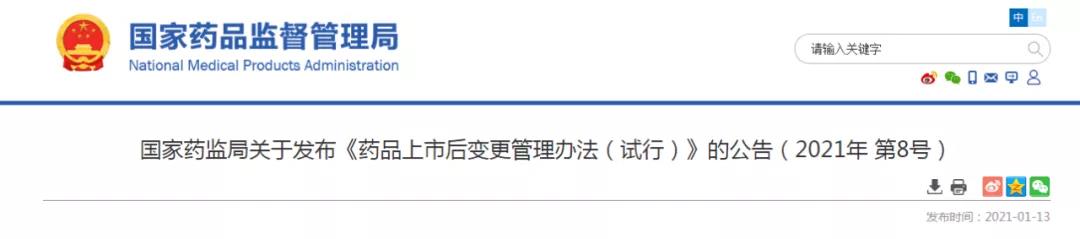 最新新闻!国家药监局宣布《药品上市后变换治理步伐(试行)》