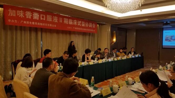 2018年3月10日,中药自然药物第6类新药加味香薷口服液Ⅱ期临床试验计划讨论会在广州裕通大旅馆顺遂召开。受申办方广州厚生康乐药物研究有限公司委托,广州beat365医药生物手艺股份有限公司认真本临床试验的项目治理和临床监查事情。
