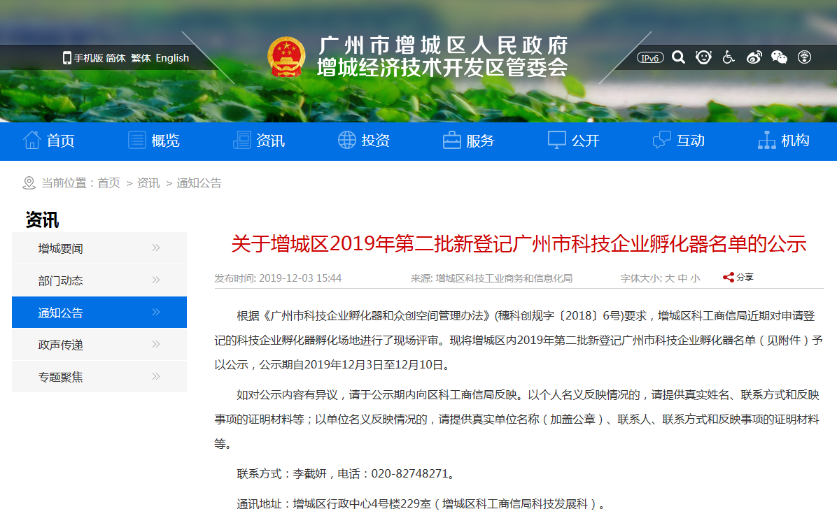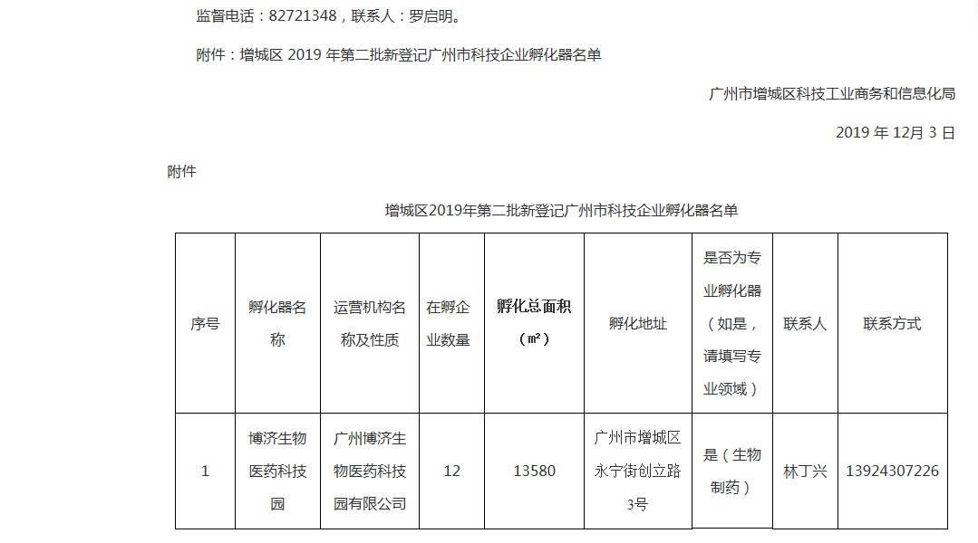 《公示》内容显示,凭证《广州市科技企业孵化器和众创空间治理步伐》(穗科创规字〔2018〕6号)要求,增城区科工商信局近期对申请挂号的科技企业孵化器孵化园地举行了现场评审。beat365生物医药科技园是本批次唯一通过评审的园区。