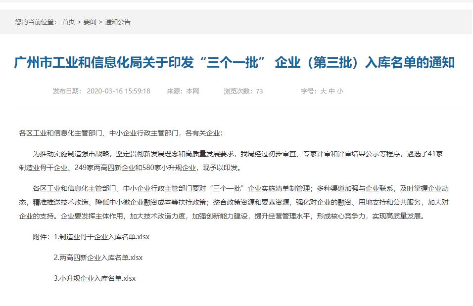 据相识,“三个一批”是广州市贯彻落实“中国制造2025”战略妄想,坚持新生长理念和高质量生长要求,进一步施展企业主体作用,支持企业加大技改力度,提升广州市工业投资强度,增进工业结构优化升级而启动的支持政策。旨在做大做强一批制造业主干企业、提质增效一批“两高四新”企业、培育壮大一批“小升规”企业。其中的“两高四新”是指切合高科技、高生长、新手艺、新工业、新业态、新模式的企业,该类型企业需贯彻新生长理念,并且切合高质量生长要求。