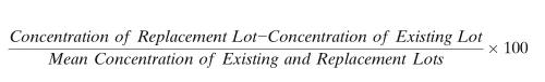 ¶¨Á¿LBAÒªÁìÖУ¬Ìæ»»QCÅú´ÎµÄÈÏÖ¤£¬Ó¦µ±ÒÔͨÀýÔËÐнÓÊܱê×¼ÖеĻ®¶¨Îª»ù´¡£¬Í¬Ê±Ò²Ó¦µ±ÒÔÆäÓëÏÖÓм°¸ñQCÅú´ÎµÄ¿É±ÈÐÔ£¨comparability£©Îª»ù´¡¡£ÀýÈ磬¿É±ÈÐÔ±ê×¼¿É°üÀ¨ÏÖÓÐÅú´ÎºÍÌæ»»Åú´ÎÖ®¼ä¡À10%»òÒÔϵIJî±ð¡£Ê¹ÓÃÏÖÓкÍÌæ»»QCÑùÆ·µÄÕÉÁ¿Å¨¶È£¬¿ÉÒÔÓÃÏÂÃæµÄ¹«Ê½È·¶¨²î±ð°Ù·Ö±ÈÖµ£¨%£©¡£