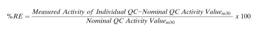 ÔÚÕâÖÖÇéÐÎÏ£¬¿ÉÒÔͨ¹ý½¨ÉèQCµÄ±ê³Æ»îÐÔÖµ£¨nominal activity value£©À´Õ½Ê¤Õâ¸ö¾ÖÏÞÐÔ¡£Ã¿¸öŨ¶È¼¶±ðµÄ±ê³ÆQC»îÐÔÖµ¿ÉÒÔ£¬ÓÉÖÁÉÙ2ÈË£¬Æ¾Ö¤ÖÁÉÙ30´Î¼°¸ñÔËÐÐµÄÆ½¾ù²â¶¨»îÐÔÖµ£¬ÔÚÖÁÉÙ10-20ÌìÄÚ½¨É衣ÿ´ÎÔËÐÐÖÁÉÙÓ¦°üÀ¨3×éQCÑùÆ·¡£ËùÓм°¸ñÔËÐÐµÄÆ½¾ù»îÐԲⶨֵ£¬¼´ÎªQCµÄ±ê³Æ»îÐÔÖµ£¬²¢¿ÉÒÔʹÓÃÏÂÃæµÄ¹«Ê½ÅÌËãµ¥¸öQCÑùÆ·µÄ%RE£º